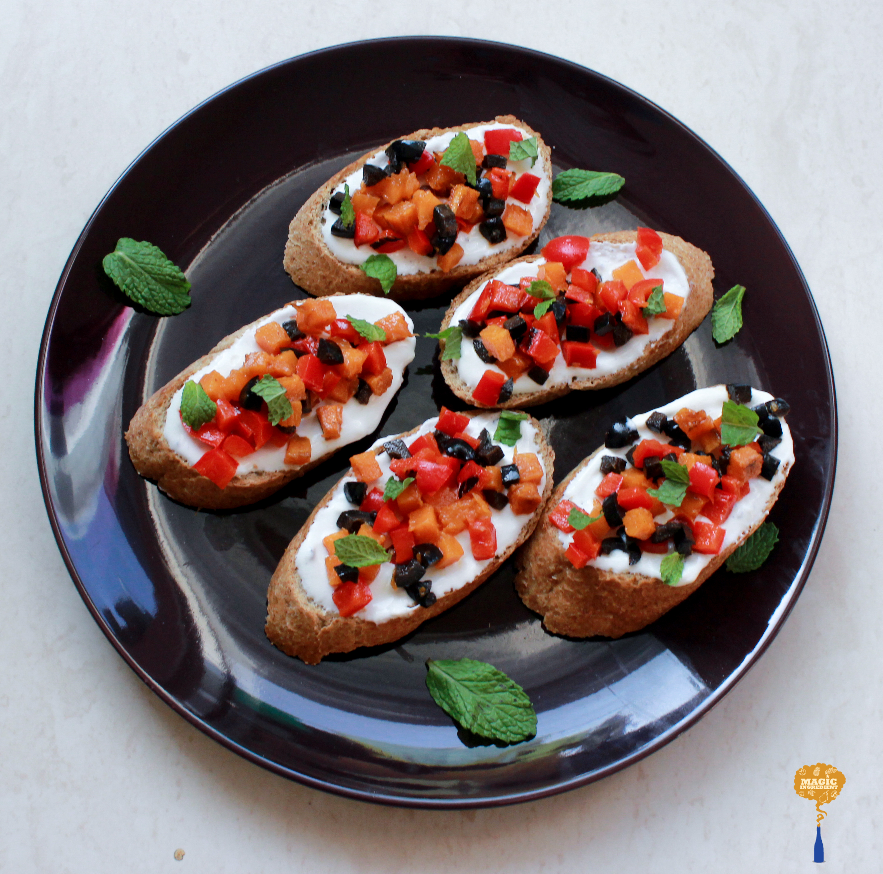 recipe of Roasted pumpkin and bell pepper bruschetta