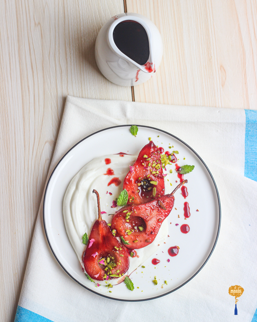 I choose pears which were slightly ripe so that it lends a natural sweetness. I often serve them as dessert or breakfast.