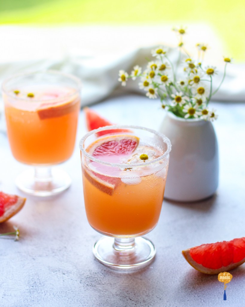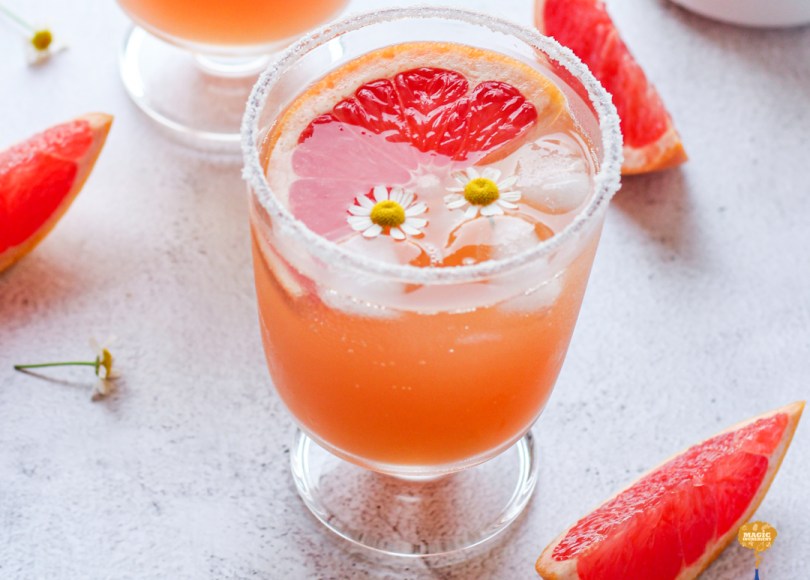 - Garnish with a slice of grapefruit and edible flowers(optional).