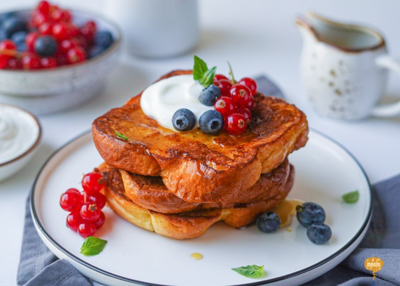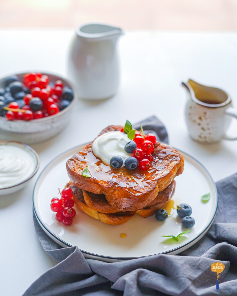 I paired these delicious French toasts with whipped cream, fresh berries, and a cup of coffee. What an excellent start to the day!