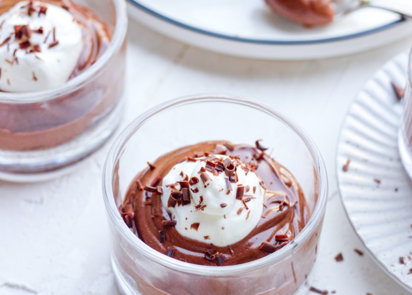 I avoid eating chocolate mousse for the only reason, egg whites. Somehow the texture doesn’t sit well with me. This recipe avoids eggs yet has a lovely texture. It is rich, dense with an intense chocolate flavor.