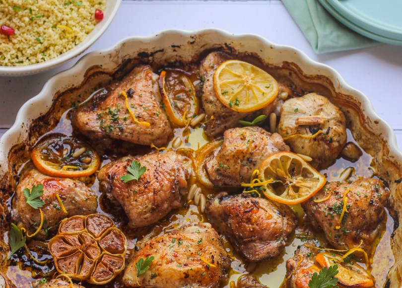 This baked chicken can take center stage on your Eid dinner table. I love pairing it with pearl or regular couscous. Don’t forget to keep some extra couscous or bread to soak in the extra flavourful oil left in the baking tray. Enjoy!