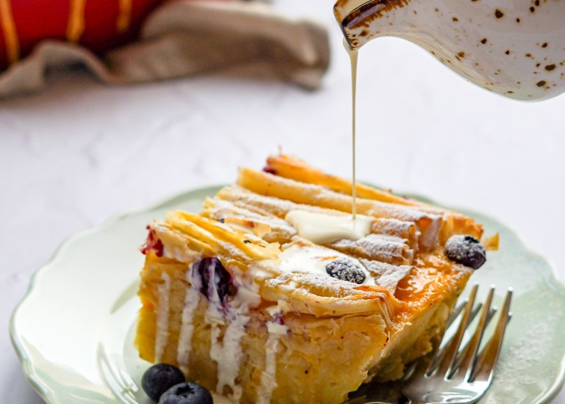 Simple, fragrant, and super easy to make. I call it a crinkle cake, but it’s a baked custard with filo pastry layers. Families look for something special to grace their dinner tables as Thanksgiving approaches. This year, why not dazzle your guests with a unique dessert that combines the elegance of filo pastry with the zesty freshness of oranges and the sweet burst of blueberries? Enter the Orange Blueberry Filo Cake, a delightful twist to your Thanksgiving menu set to steal the show.