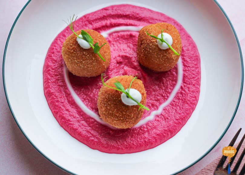 Indian cuisine is a feast for the senses, celebrated not just for its bold flavors but also for its vibrant colors. These colors, derived from various spices, herbs, and fresh ingredients, transform everyday dishes into stunning works of art. The beauty of Indian food lies in its ability to create these visually captivating meals with minimal effort, using natural hues that speak of the rich heritage and diversity of the subcontinent. This visual language is what makes Indian food so appealing, even before the first bite. Indian cottage cheese (paneer) kofta in beetroot sauce combines the creamy texture of paneer with the vibrant, earthy tones of beetroot, all brought together by the sharpness of feta cheese. The result is a visually striking and delicious meal that will impress.