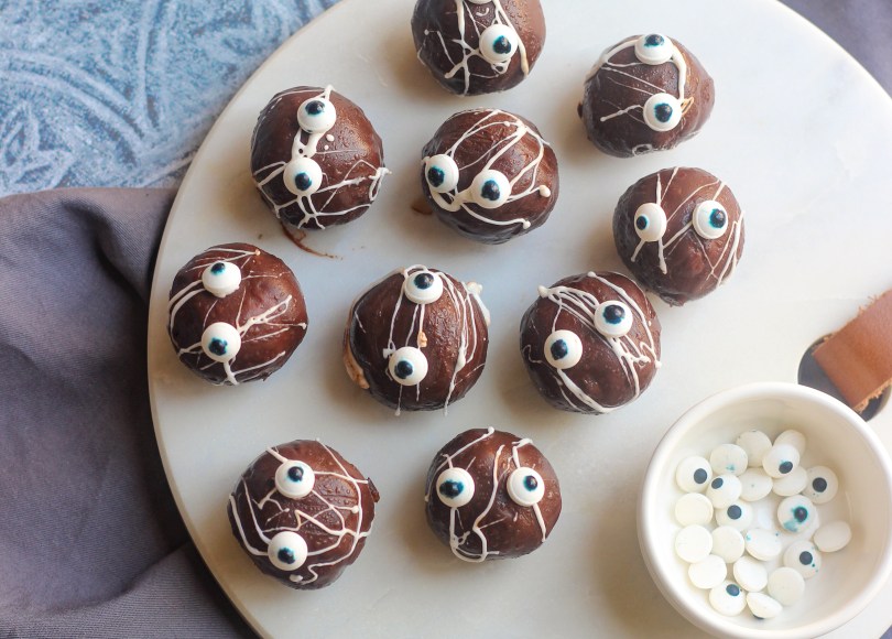 - Refrigerate for 20-30 minutes or until the chocolate is set. Decorate with marshmallow webs and edible eyes.