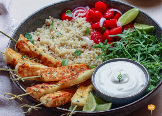I love making kebabs with cheese. Even though the usual choice is meat, fish, or veggies for a change, I tried halloumi cheese as the hero. Cheese is a relatively easy ingredient to work with, and it takes less time compared to others. I usually use Indian cottage cheese for making vegetarian kebabs. However, for a middle-eastern-inspired meal, I choose Halloumi. Honey and thyme roasted halloumi kebabs tasted perfect with couscous and salad.