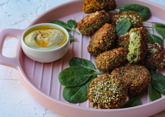 Even though the classic falafel never fails to impress, I add a twist to keep the interest alive. Sweet potato falafels have a gorgeous color and taste delicious. Sweet potatoes help bind the falafel together.