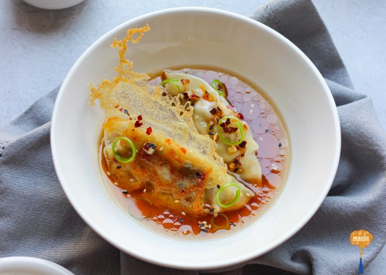 Lace or skirt dumplings in miso broth and chili oil is the epitome of texture, flavor, and balance. This dish
