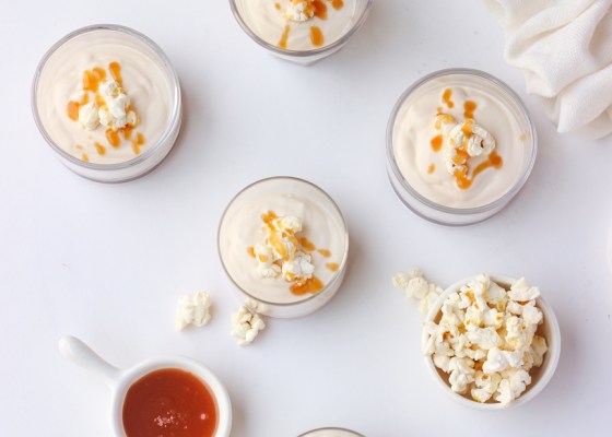 Here is a decadent, indulgent dessert that will take you back to the childhood candy store. Salted caramel mousse is sweet and has the saltiness from the sauce to cut through it. I added the popcorn and lotus biscuits for some crunch.